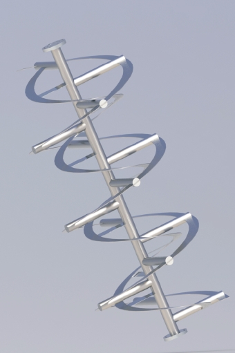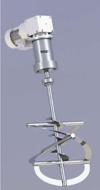 螺带式搅拌器的叶片为螺带状,螺带的数量为两到三根,被安装在搅拌器中央的螺杆上,螺带式搅拌器的螺距决定了螺带的外径。通常是在层流状态下操作,适用于黏度高的液体和拟塑性的流体混合。