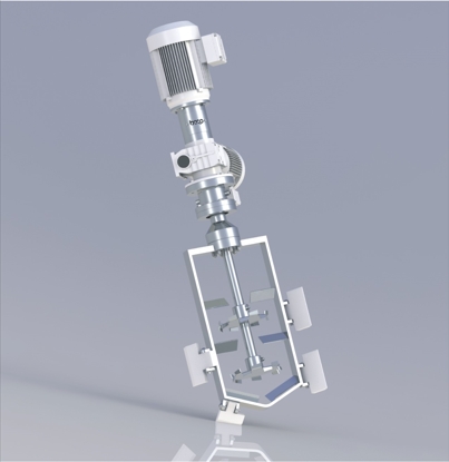 双轴双速搅拌器集高速分散和低速强力搅拌于一体,对中高粘度及触变性物料具有很好的搅拌效果。可以根据客户的物料特性和生产工艺要求定制合理配置。各种叶轮可供客户选用。刮壁式锚式搅拌浆在旋转过程中,驱使物料做轴向旋转和径向旋转,使之搅拌混合均匀,同时在搅拌器的四周带有四氟刮壁板,对罐体内壁及罐底进行无残留刮壁。中间高速分散盘在高速状态下,具有很高的剪切力,短时间内将物料分散均匀。完全解决了粘度大、密度高传统搅拌器达不到技术要求的搅拌效果和粘壁问题。